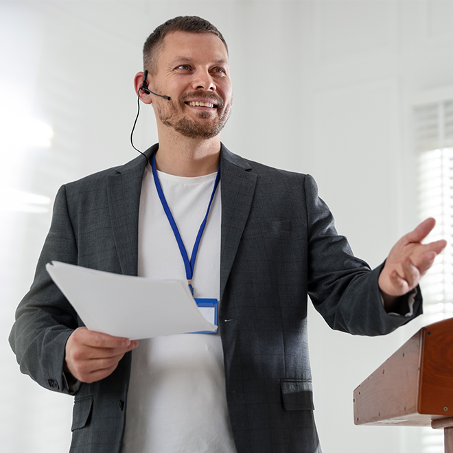 The Blueprint provides a structured way to diagnose what limits performance and focus effort where it creates the greatest improvement. The result is not just a better presentation, but a speaker who can repeat strong performance across different situations.